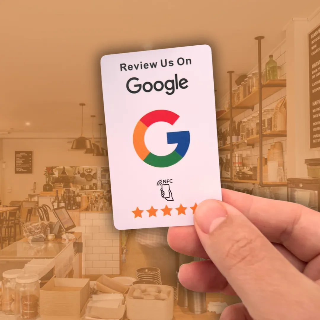 This innovative solution transforms the traditionally cumbersome review process into a simple tap interaction – customers merely touch their phone to the card, and they're instantly directed to your review page.