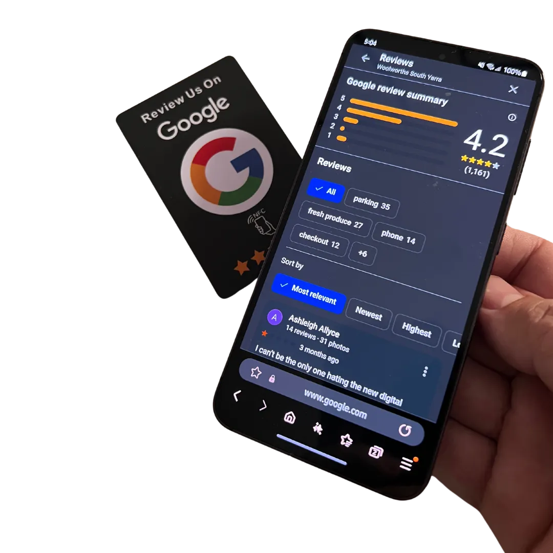 For just one dollar, you can revolutionise your review collection strategy with a powerful NFC tap card that removes all friction from the customer feedback process.